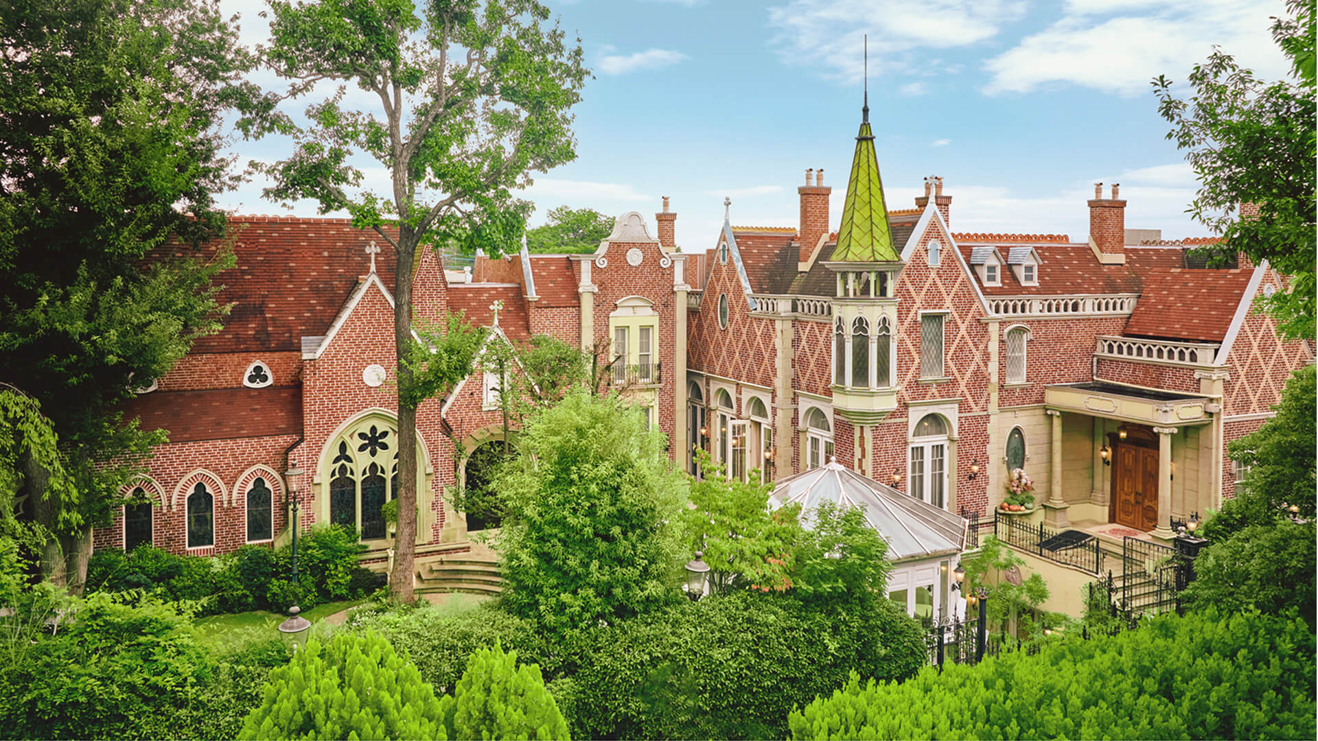 ステンドグラス輝くチャペルや、レンガ造りの邸宅、