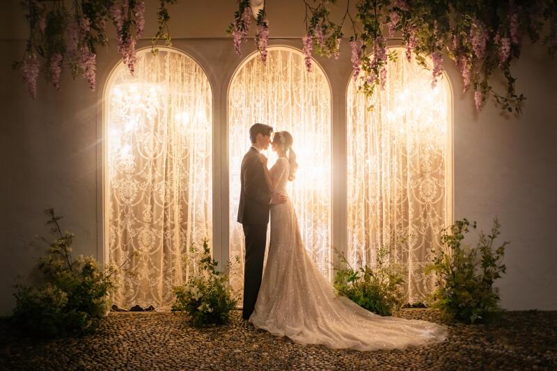 韓国独自のスタジオデザインで作られた、クラシカルなチャペル、満開の花々が咲くフラワーウォールなど雰囲気作りにこだわったたくさんの世界観。