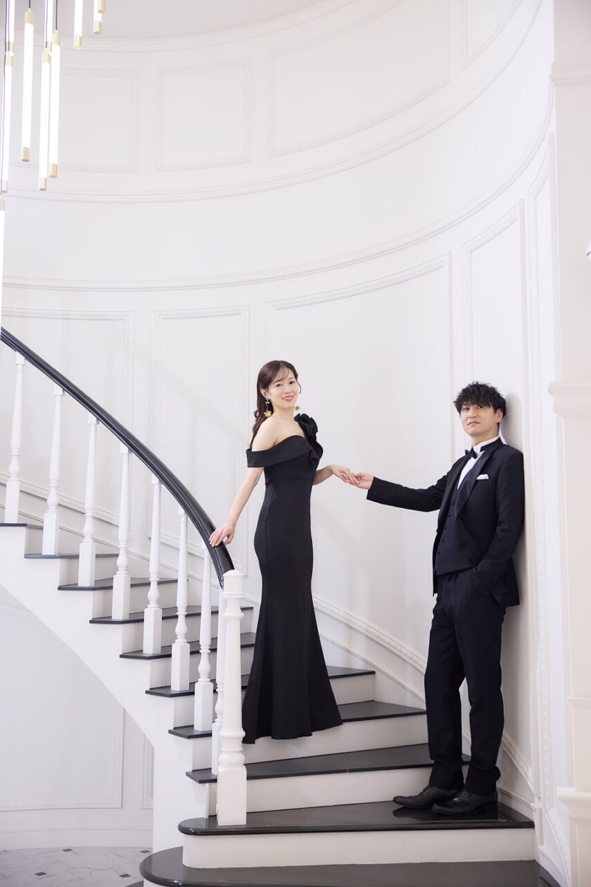 黒×黒でスタイリッシュに、白黒でシンプルな背景でも写真がしまりますね。