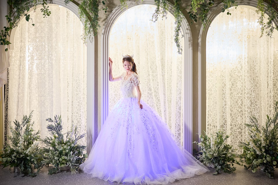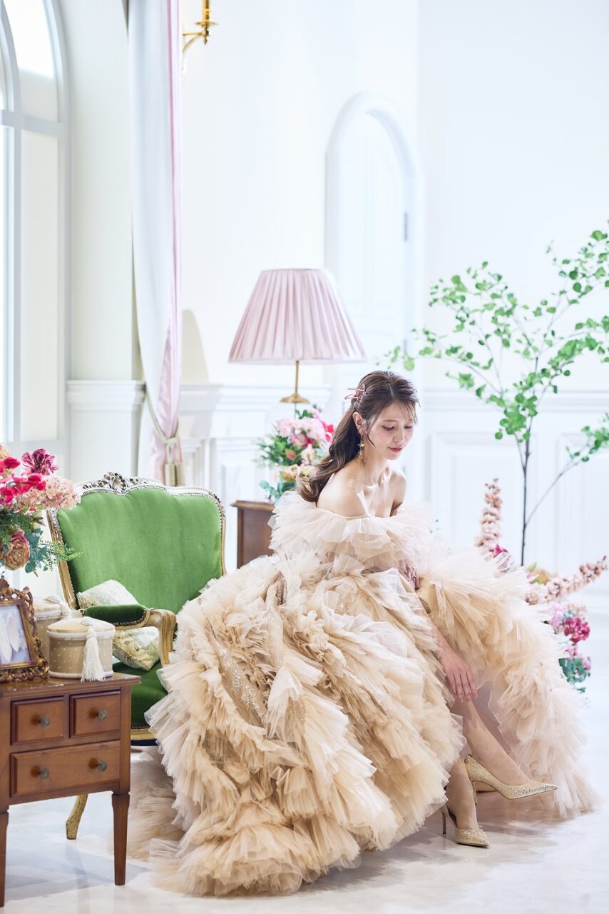 カラードレスはふわふわの韓国っぽいドレスで大人可愛いスタイルで